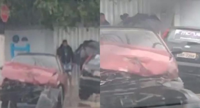 Com o acidente, a frente dos dois carros ficou destruída. A colisão aconteceu na saída da ponte que interliga os bairros Aparecida e São Raimundo, em um trecho de cruzamento.