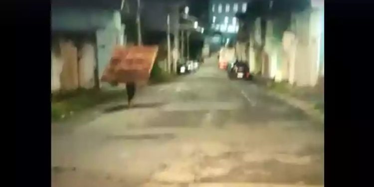 De dentro do carro, a mulher filmou o criminoso carregando o portão nas costas, enquanto ela filmava a cena.