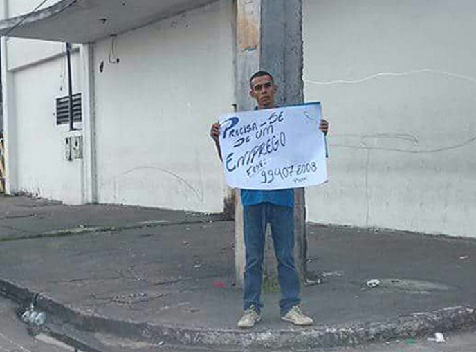 Manaus – Após bater em diversas portas em busca de emprego e não receber respostas positivas, o estudante Pyerk Lima, 23, resolveu inovar. Nesta quinta-feira (20), ele produziu um cartaz com a frase: ‘Precisa-se de um emprego’ e se encaminhou para a Avenida Constantino Nery, localizada na Zona Centro-Sul de Manaus. Lá ficou por um bom tempo expondo o material.