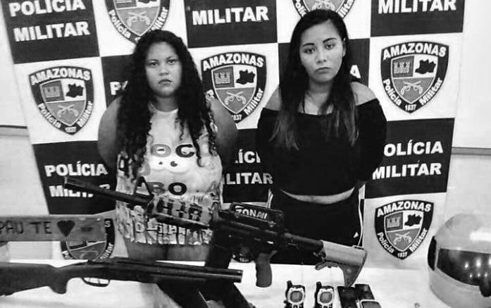 Manaus – Karina Andrade da Silva, 21, e Regiane Santana, 22, foram presas na madrugada desta quarta-feira (1º), no Beco São Luiz, bairro Dom Pedro, zona centro-oeste de Manaus, com duas motos roubadas, 1/2 quilo de drogas, simulacro de fuzil, uma espingarda e rádios comunicadores, de acordo com a assessoria de imprensa da Polícia Militar (PM).