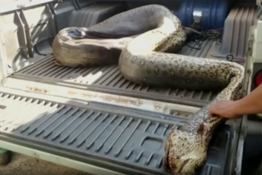 Os pesquisadores perceberam que uma das onças não estava mais se movimentando e foram ao local, mas ao invés de encontrar a onça encontraram a sucuri.