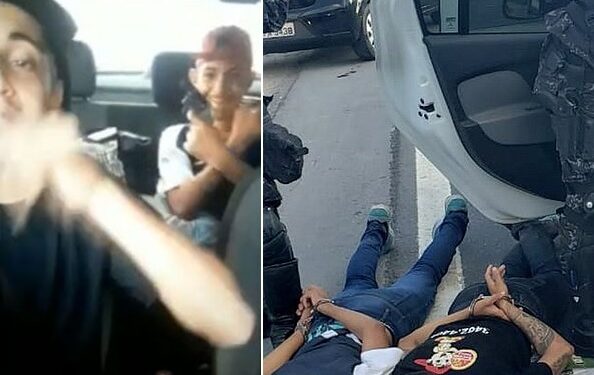 As imagens do vídeo da “live” circularam pelo WhatsApp. Os dois aparecem dançando dentro do carro roubado e um deles exibe a arma usada no crime. Depois, a Polícia Militar chega e prende a dupla. Os dois aparecem preocupados e depois colocando as mãos para o alto. “Polícia…”, diz um. “Calma”, recomenda o outro. Mas logo em seguida são ouvidos gritos e a abordagem acontece.