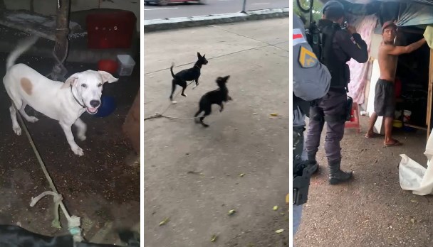 No local, cinco animais foram encontrados presos com cordas, perto de uma fogueira que seria supostamente usado para assar os animais. Os suspeitos foram detidos e conduzidos ao 1º Distrito Integrado de Polícia (DIP) para procedimentos cabíveis. Os animais receberão atendimento veterinário e ficarão disponíveis para adoção.