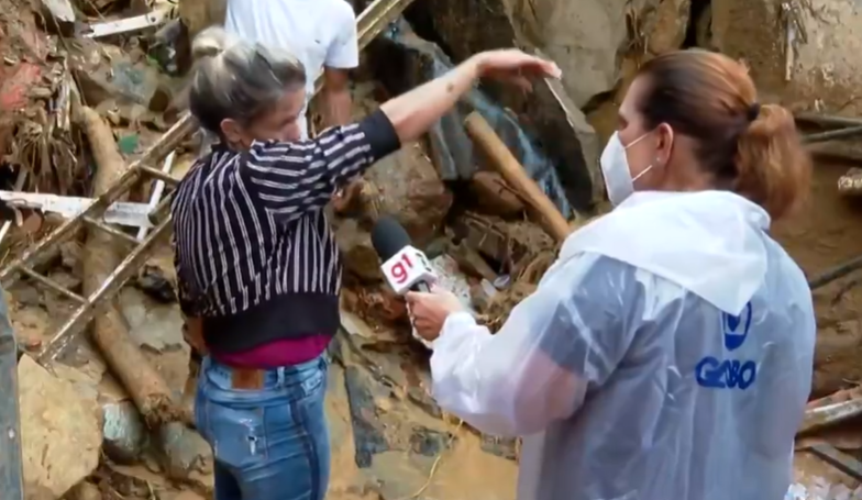 PETRÓPOLIS (RJ) – Uma mulher arregaçou as mangas e, desesperada, tentava procurar a filha da afilhada, no que sobrou do Morro da Oficina, durante forte chuva em Petrópolis, no Rio de Janeiro. Já são mais de 50 mortes e 80 casas atingidas.