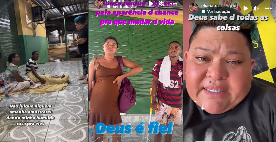 MANAUS (AM) – Conhecida por entregar alimentos nas ruas, além de fazer os vídeos cozinhando a “pecanha” para a família, a influenciadora Eliana Franco, conhecida pelo bordão “Chama pai, ô besteira”, deu um passo a mais nesta terça-feira (3). Ela doou uma casa para um casal que estava morando na rua, em Manaus.