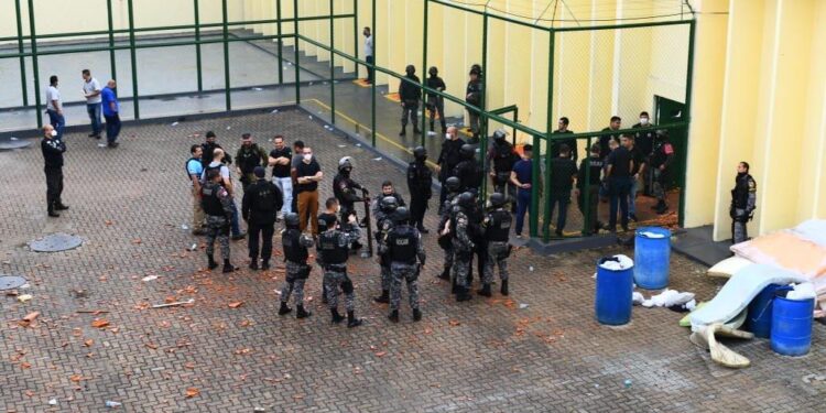 O secretário de Administração Penitenciária, coronel Marcos Vinicius, o secretário de segurança pública, coronel Louismar Bonates, e o comandante-geral da Polícia Militar, coronel Ayrton Norte, conduziram a operação que contou com efetivos do Grupo de Intervenção Penitenciário e das tropas especializadas da Polícia Militar (Rocam, COE, Marte, CipCães), o Departamento de Operações Aéreas da Secretaria de Segurança e o Corpo de Bombeiros.