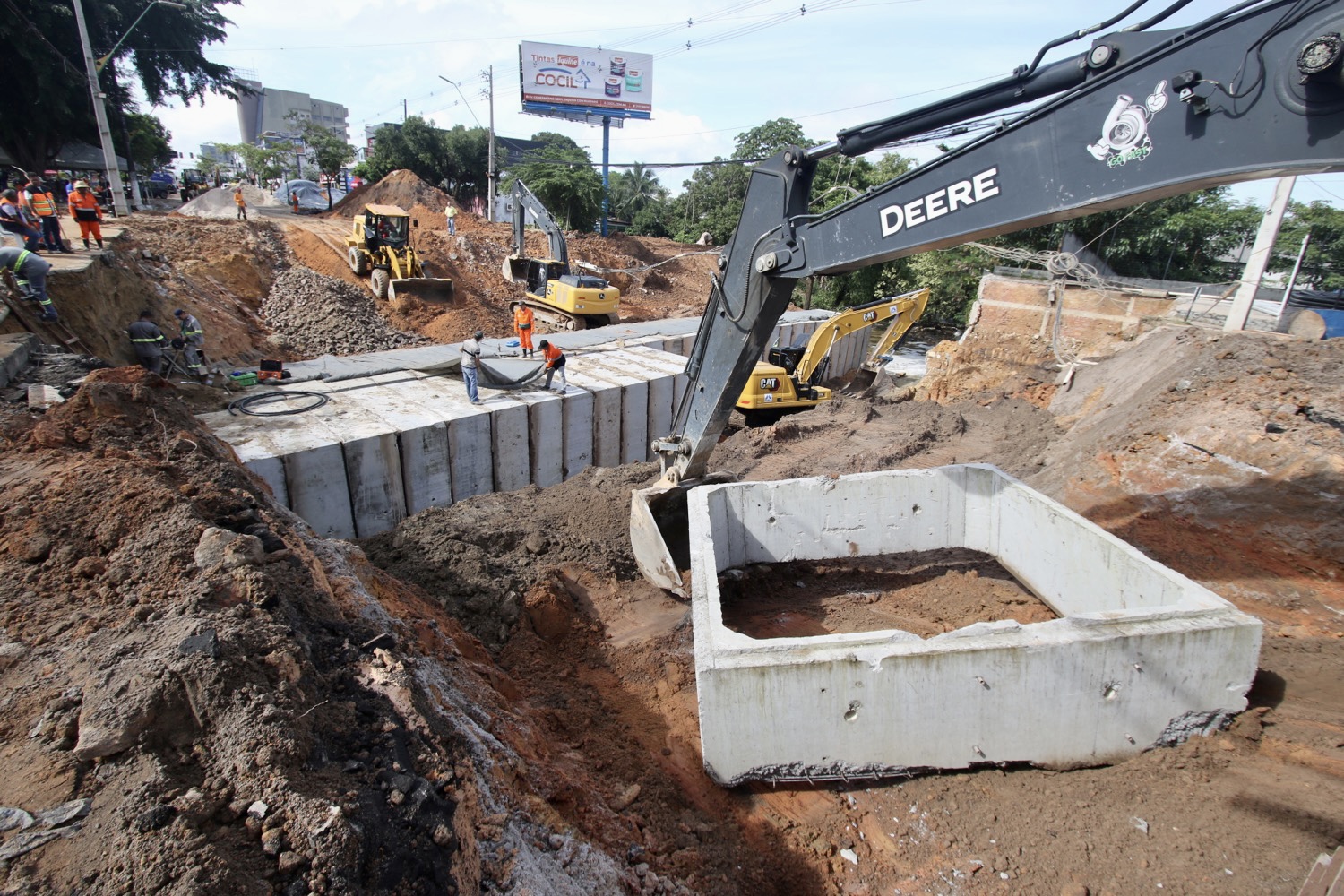 MANAUS (AM) – A Prefeitura de Manaus, por meio da Secretaria Municipal de Infraestrutura (Seminf), iniciou a implantação da segunda linha de tubulação com aduela de concreto no novo sistema de drenagem na avenida Djalma Batista. A intervenção acontece, neste sábado, 18/2, completando 72 horas de trabalhos ininterruptos no local.