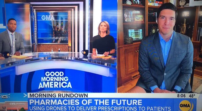 EUA | Trabalhando de casa para evitar a proliferação do novo coronavírus, Will Reeve apareceu durante o matutino Good Morning America dessa terça-feira (28/04) para falar sobre farmácias na Flórida que estão usando drones para entregar os produtos aos clientes idosos.