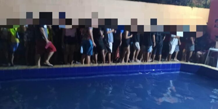 Uma denúncia por linha direta informou aos PM’s de que uma festa clandestina estava sendo realizada em uma residência nas proximidades do Centro de Eventos, provocando aglomeração de pessoas, incluindo menores de idade. Os policiais militares, juntamente com o Conselho Tutelar, deslocaram-se ao local e constataram que havia diversas pessoas na casa, entre elas vários menores consumindo bebida alcoólica.