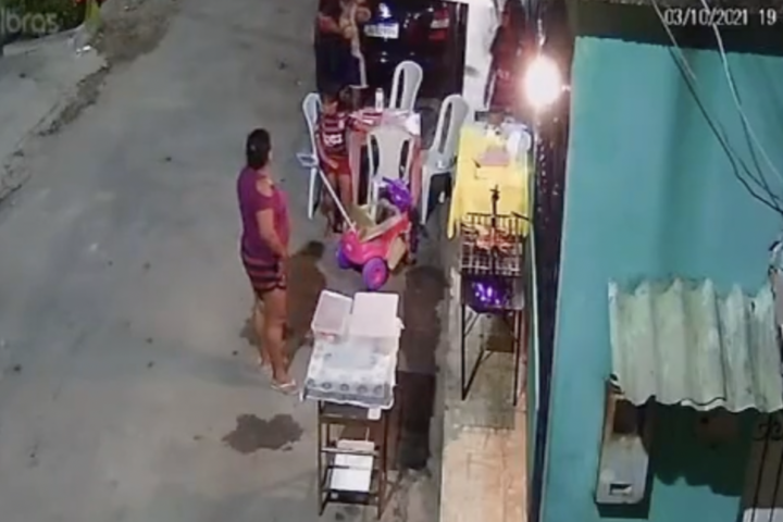MANAUS – AM | Criminosos aterrorizaram clientes em uma banca de churrasco, neste domingo (03), na rua Gualter Batista, no bairro Petrópolis, na zona Sul de Manaus. Imagens gravadas pelo circuito interno de segurança de uma residência, registram o momento em que homens, mulheres e crianças são alvos da ação.