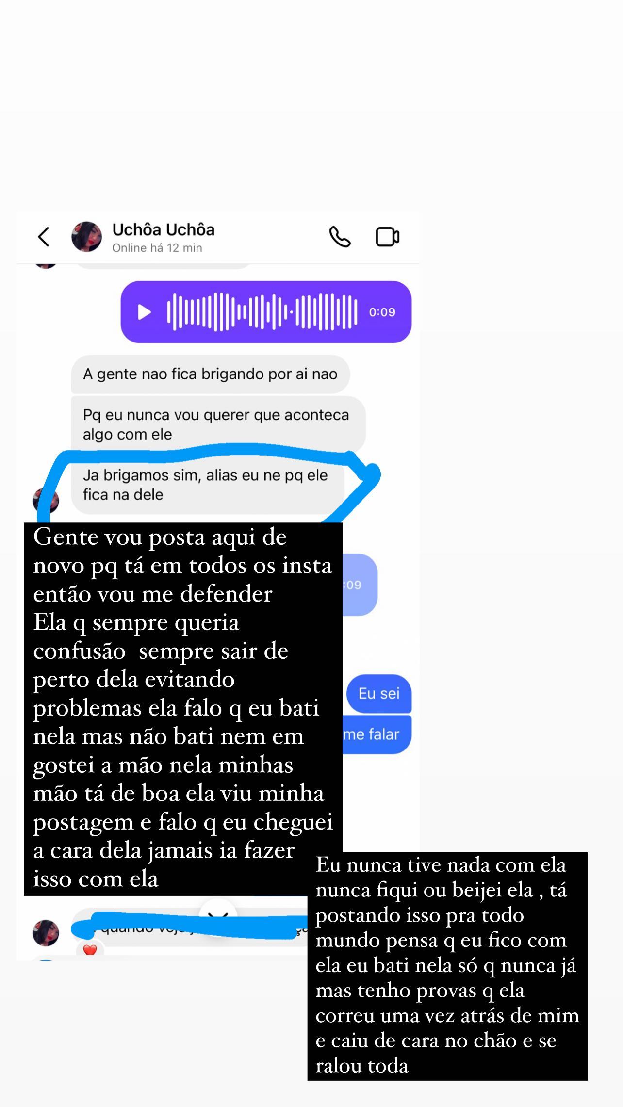O envolvido negou e disse que apenas “a empurrou” e que Bruna vive atrás dele. “Eu só empurrei ela e ela caiu de cara aqui numa quina de casa”, tentou se defender, mesmo assumindo que a empurrou e que o ato pode ser considerado uma agressão.