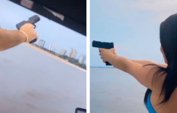 MANAUS – AM | Um trio composto por uma mulher e dois homens causaram polêmica nas redes sociais, ao publicarem um vídeo brincando com uma arma de fogo na praia da Ponta Negra, em Manaus.
