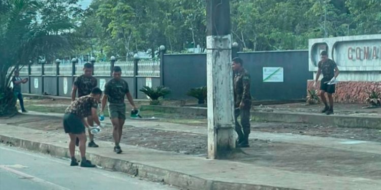 MANAUS-AM| Na manhã desta terça-feira (10), membros do Comando Militar da Amazônia (CMA) realizavam trabalho de limpeza na frente do Órgão, após a desocupação dos bolsonaristas que aconteceu ontem (9), me Manaus.