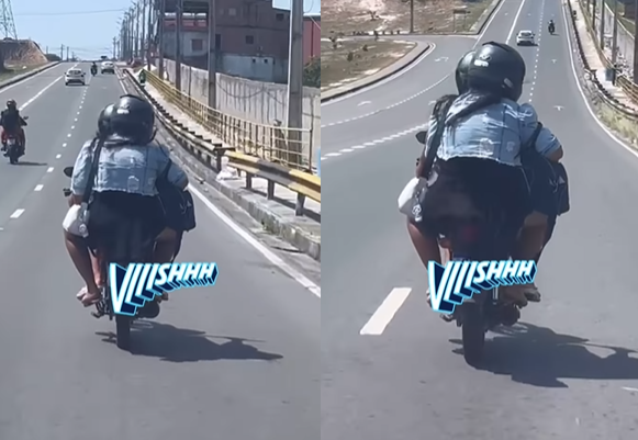 “Mulher andando sem calcinha na moto. É mole? Olha isso!”, diz o a pessoa que fica ainda sem acreditar no que está vendo.