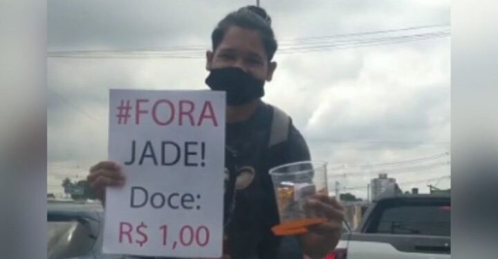 A estratégia usada pelo vendedor vou usar uma placa escrito “Fora Jade”, que é a participante considerada vilã da edição, fazendo jus à vontade do povo brasileiro. Com isso, o vendedor conseguiu vender todos os seus doces, que custam R$1 cada.