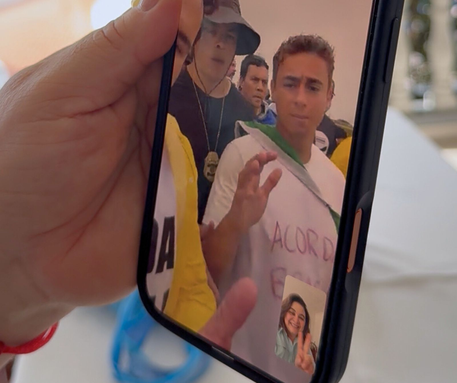 “Força aí nessa caminhada. A gente está em oração por vocês”, disse Maria ao deputado Nikolas, que a convidou a convocar mais apoiadores para o grande ato final do movimento “Acorda, Brasil”, marcado para o dia 25 de janeiro, domingo, em Brasília (DF).