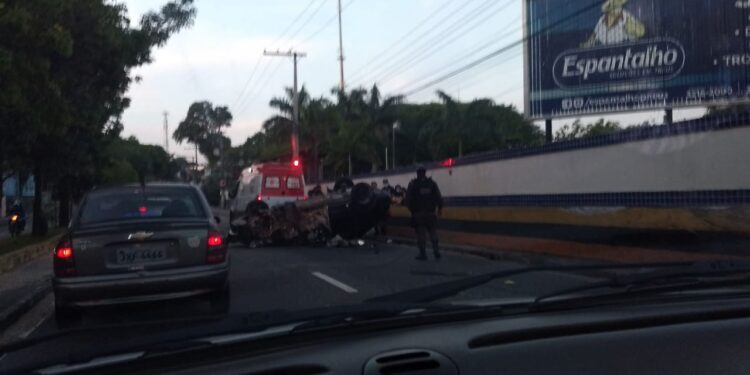 MANAUS – AM | Na manhã desta quinta-feira (11), um motorista, que não teve identidade revelada, perdeu o controle do veículo que dirigia e capotou no meio da avenida Ephigênio Salles, localizada no bairro Aleixo, zona Centro-Sul.