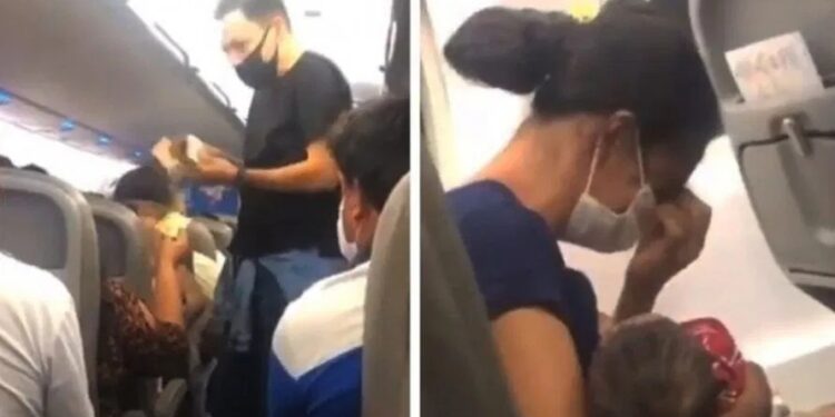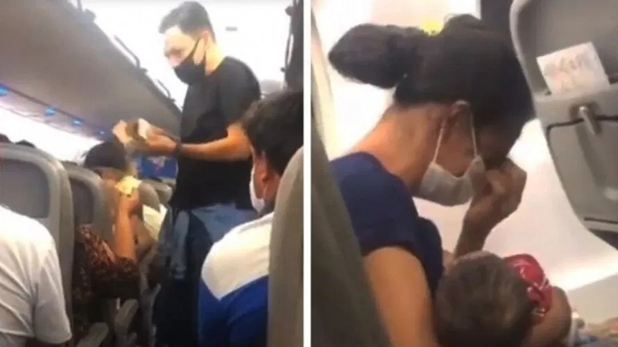 Uma outra passageira registrou todo o momento e o vídeo foi parar nas redes sociais.