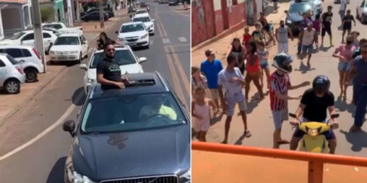 O empresário Dabliu Mendes fez a alegria da população de Areanápolis e Nortelândia, no Mato Grosso, ao distribuir R$ 10 mil para o público. Ele saiu em uma carreata pelas ruas jogando de cima de um carro notas de R$ 10, R$ 20 e R$ 50.