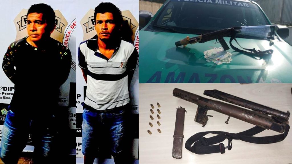 Rio Preto da Eva (AM) – Madson Andrei Nogueira Rodrigues e Antonio Paulo Lima Marcelino foram detidos na madrugada desta segunda-feira (11) portando uma submetralhadora no bairro Luciano Batista, localizado no município de Rio Preto da Eva, a 57 quilômetros a nordeste de Manaus.