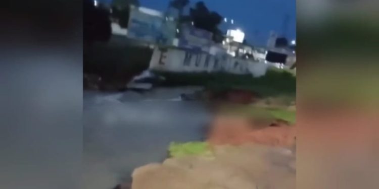 Em um vídeo feito por um cinegrafista amador mostra o barranco levado pelo igarapé o que formou uma espécie de cratera.