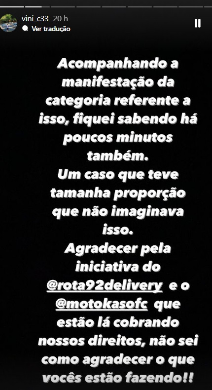 “Minha mãe mandou eu estudar para virar playboy. Não escutei direito, virei motoboy’, disse Vinícius Cruz, um dos envolvidos na treta de domingo.