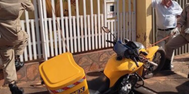 Segundo o Corpo de Bombeiros, a vítima subiu com a moto na calçada e enquanto colocava as correspondências na caixinha de correio, a tampa de concreto cedeu.