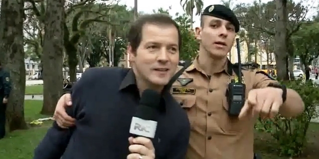 Os profissionais faziam imagens do local onde uma suposta bomba foi deixada e se desentenderam com as autoridades enquanto o isolamento era feito. Segundo informações do canal, agentes passavam uma fita para delimitar o local quando perderam a paciência.