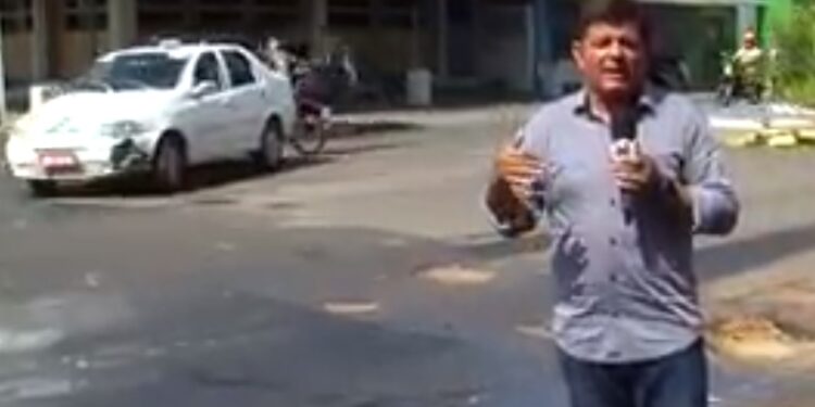 O repórter Adelino Aguiar gravava uma reportagem para o programa Agora Parintins, sobre os buracos na via e foi surpreendido com a colisão que pode ser registrada com perfeição pelas câmeras da reportagem.