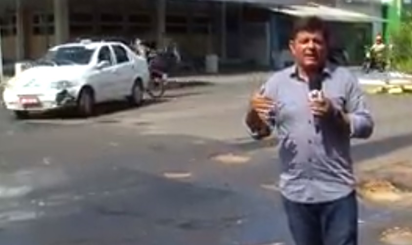 O repórter Adelino Aguiar gravava uma reportagem para o programa Agora Parintins, sobre os buracos na via e foi surpreendido com a colisão que pode ser registrada com perfeição pelas câmeras da reportagem.