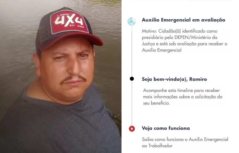 Ao se cadastrar no programa, Ramiro decidiu acompanhar a análise. Na última quarta-feira, 28, ele entrou no site e se surpreendeu ao ler a seguinte mensagem no aplicativo: “cidadão presidiário no DEPEN/Ministério da Justiça e está sob avaliação para receber o Auxílio Emergencial”.