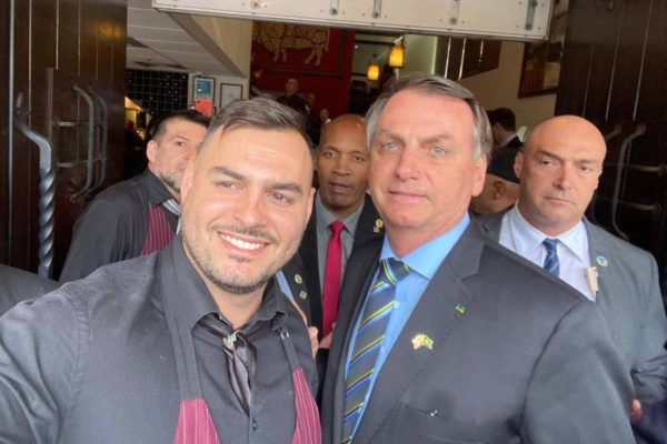 MIAMI – Franklin Oliveira soube há duas semanas que a churrascaria onde trabalha como garçom em Miami receberia uma “festa” para 40 pessoas, mas só hoje foi informado sobre quem seria a estrela do encontro: o presidente Jair Bolsonaro. No segundo andar do Brazilian Steak House, Oliveira se viu frente a frente com o político por quem fez campanha contrária nas eleições de 2018. “Fiz campanha nas redes sociais pelo Ciro Gomes. No segundo turno, pelo Fernando Haddad. Mas da porta para dentro eu sou CNPJ e da porta para fora, o Social Security Number (número de identificação pessoal nos EUA semelhante ao CPF)”, contou o carioca a um grupo de jornalistas.