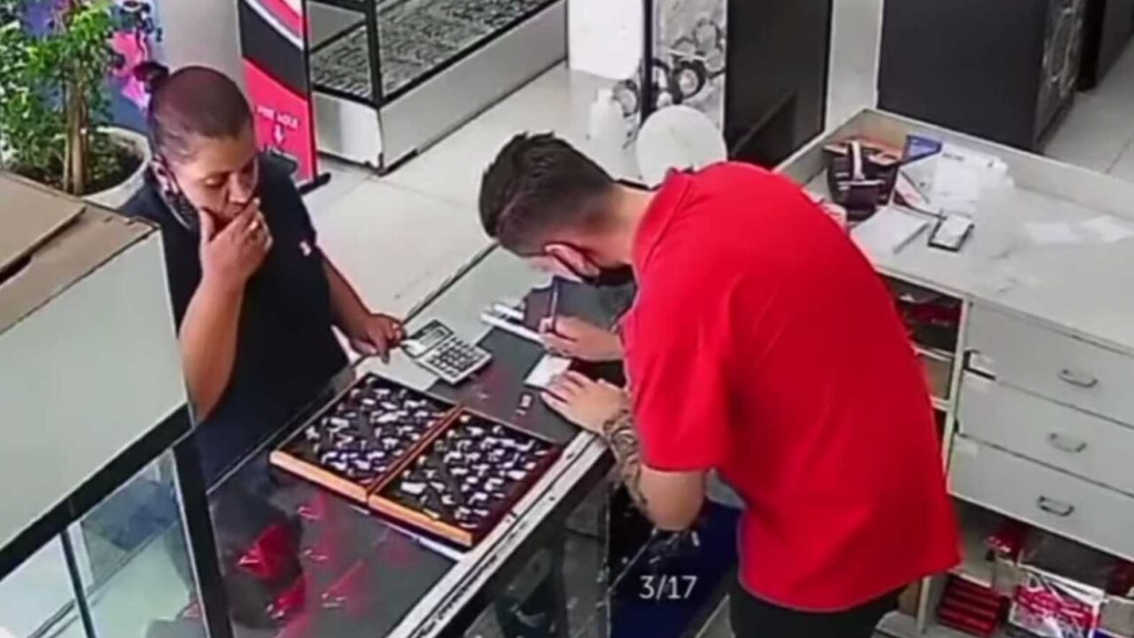 De acordo com informações do dono da loja, a mulher chegou e pediu para ver alguns anéis mostruário. Nesse momento, dois atendentes estavam no local.