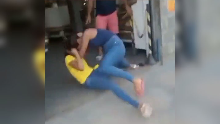 A amante, que é atendente de uma padaria, e a mulher traída saem nos tapas e chegam a rolar no chão. Tudo isso acontece em plena luz do dia, por volta das 6h da manhã.