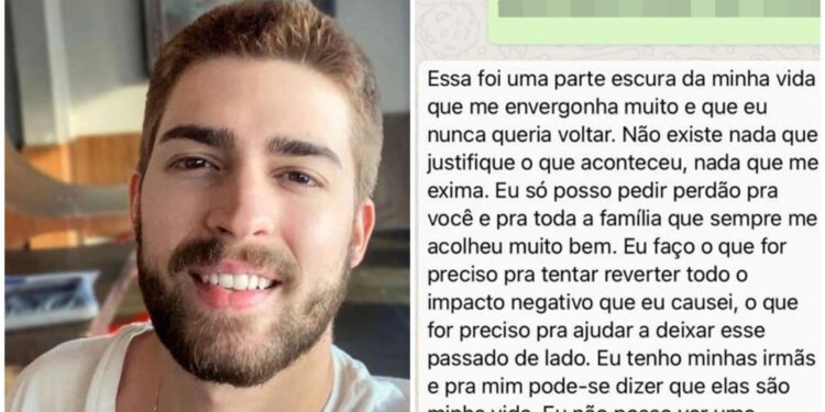 Em seguida, o estudante respondeu: “Essa foi uma parte escura da minha vida que me envergonha muito e que eu nunca queria voltar. Não existe nada que justifique o que aconteceu, nada que me exima. Só posso pedir perdão para você e para toda a família que sempre me acolheu muito bem”.