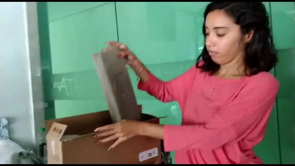 Dois meses depois da solicitação de troca, o novo aparelho chegou e mais uma vez a família foi pega de surpresa: ao invés do notebook, um pedaço de madeira estava dentro da embalagem.