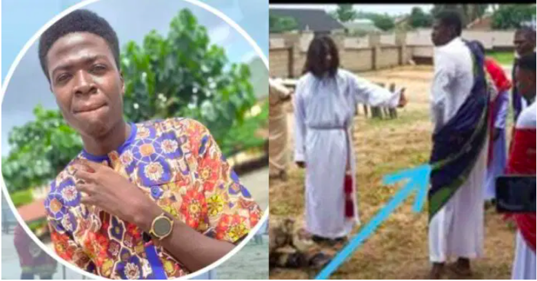 O jovem – que estudava para ser padre no seminário da Universidade Clariantiana em Nekede, Sudeste da Nigéria – interpretava o papel de Simão Pedro, o discípulo mais importante de Jesus, vestindo uma longa toga branca.