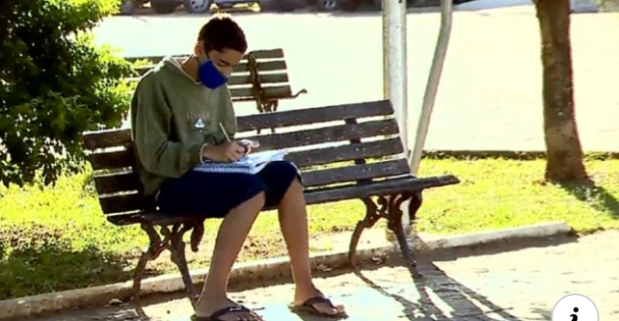 GOIÁS | Um adolescente de 13 anos encontrou uma maneira de conseguir acompanhar as aulas online adotadas devido a pandemia.