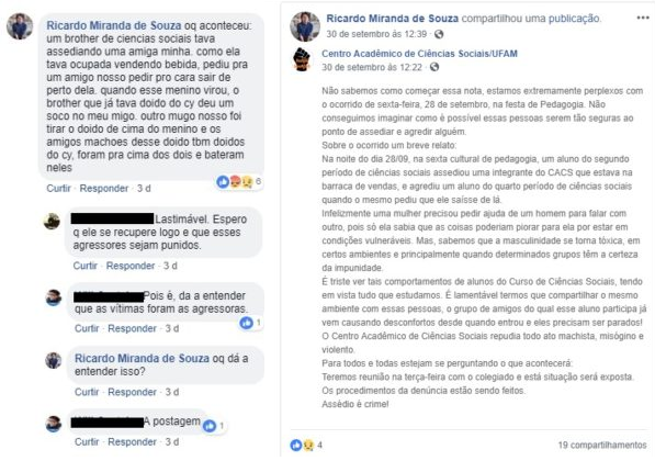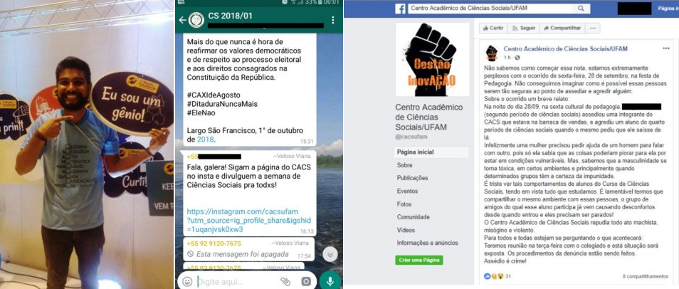 De acordo com informações do Portal Amazonas News, os alunos envolvidos foram identificados como Diego Veloso, Lucillany Carneiro de Sousa, Claudio Vinicius e Ricardo Miranda de Souza são acusados de criar falsa acusação de assédio sexual para difamar um estudante de Ciências Sociais da Universidade do Amazonas (UFAM), pelas redes sociais, como Facebook, Instagram e grupos de WhatsApp, inclusive na página do Centro Acadêmico de Ciências Sociais da instituição de ensino na qual os autores são alunos. Há suspeita de que um professor ligado ao Partido dos Trabalhadores (PT) esteja envolvido.