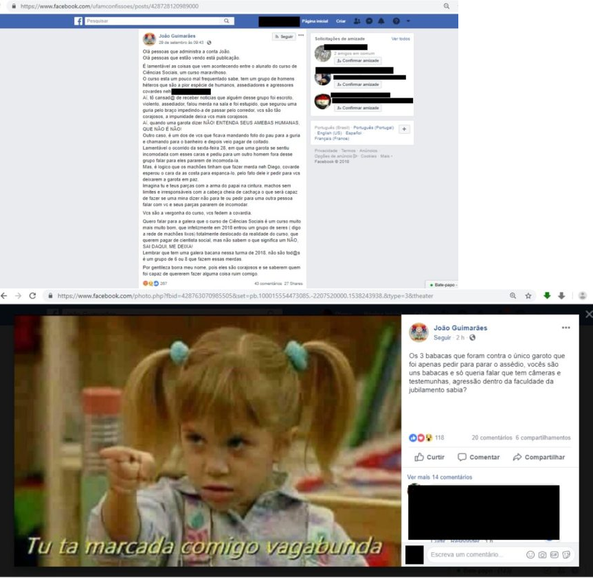 Além disso o grupo usou para divulgar a Fake News um perfil falso denominado (João Guimarães) que expôs o nome do estudante. O dono do perfil já foi identificado pela polícia. Contra ele existem várias denuncias pelo mesmo crime na Delegacia Interativa da Polícia Civil do Amazonas.