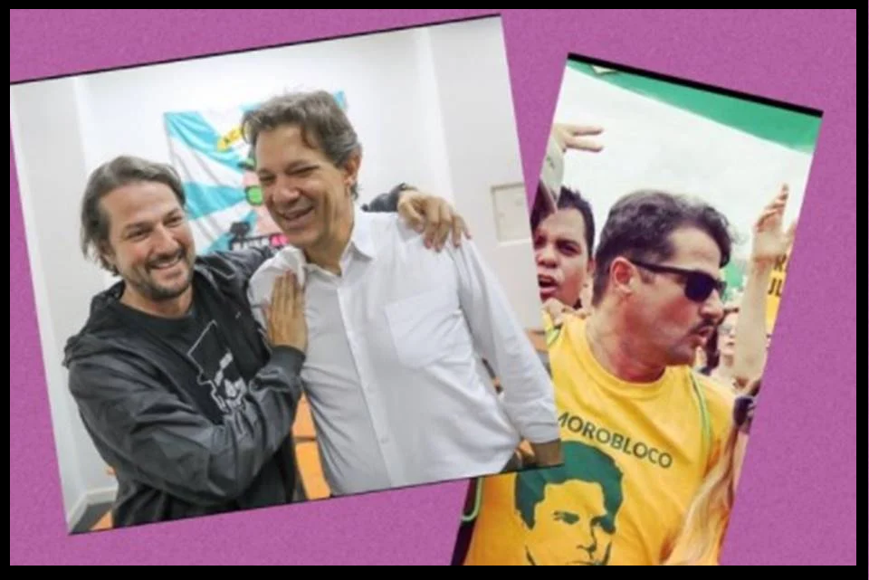 No entanto, o ator se mostra em outro lado do espectro político. Em março, publicou uma foto em seu Instagram ao lado de Haddad.