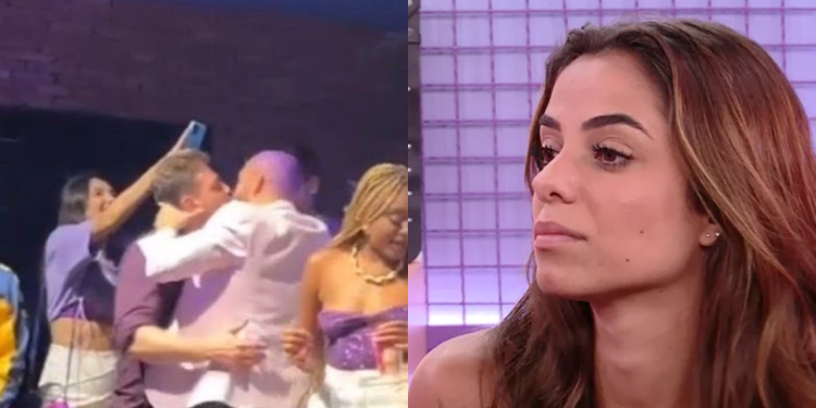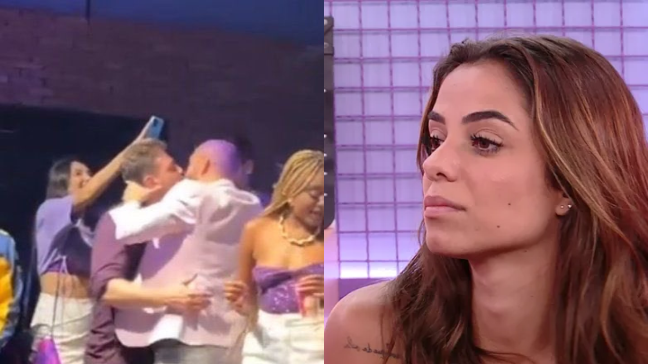 E claro que não podia faltar os exs-colegas de confinamento. Fred fez questão de distribuir shots de bebida na boca dos convidados e beijar na boca deles.