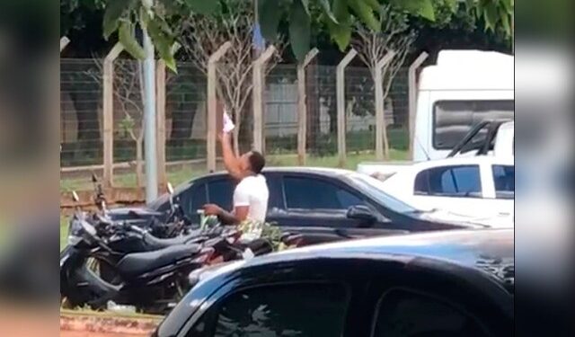 Após Fernando sair da sala, continuou observando a reação dele e foi até o estacionamento, quando o viu ajoelhado no chão chorando. “Voltei e peguei meu celular para filmar. Peguei quando já estava em pé, do lado da moto”, diz.