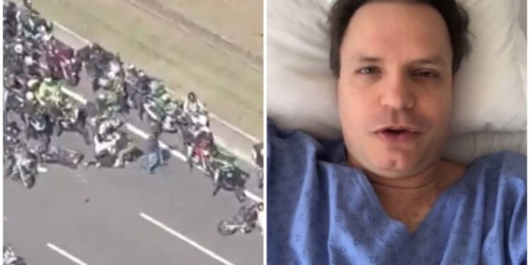 “Infelizmente, no sábado, eu sofri um acidente de moto. Uma moto caiu na minha frente e acabou me derrubando. Quando eu estava me levantando, uma outra moto que vinha atrás acabou me atropelando. Me machuquei bastante e fui socorrido para o Einstein”, contou Alan no Instagram.