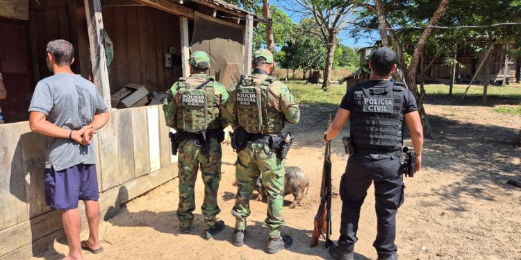 “Recebemos informações sobre o paradeiro do foragido e, com o apoio da Polícia Federal, conseguimos localizá-lo em uma área de difícil acesso. Com ele, foram apreendidas três espingardas, o que resultou também em sua prisão em flagrante, além do cumprimento dos mandados judiciais pelos crimes de homicídio e organização criminosa”, informou o delegado.