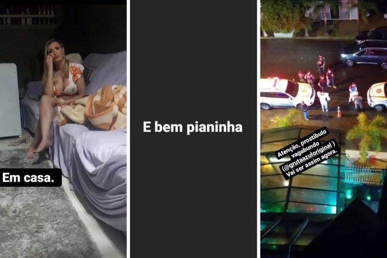 Grávida do primeiro filho do ex-casal, foi Andressa que revelou que Thiago estava com policiais no local. Nos stories do Instagram, a modelo mostra a movimentação de viaturas e policiais em frente à casa de show.
