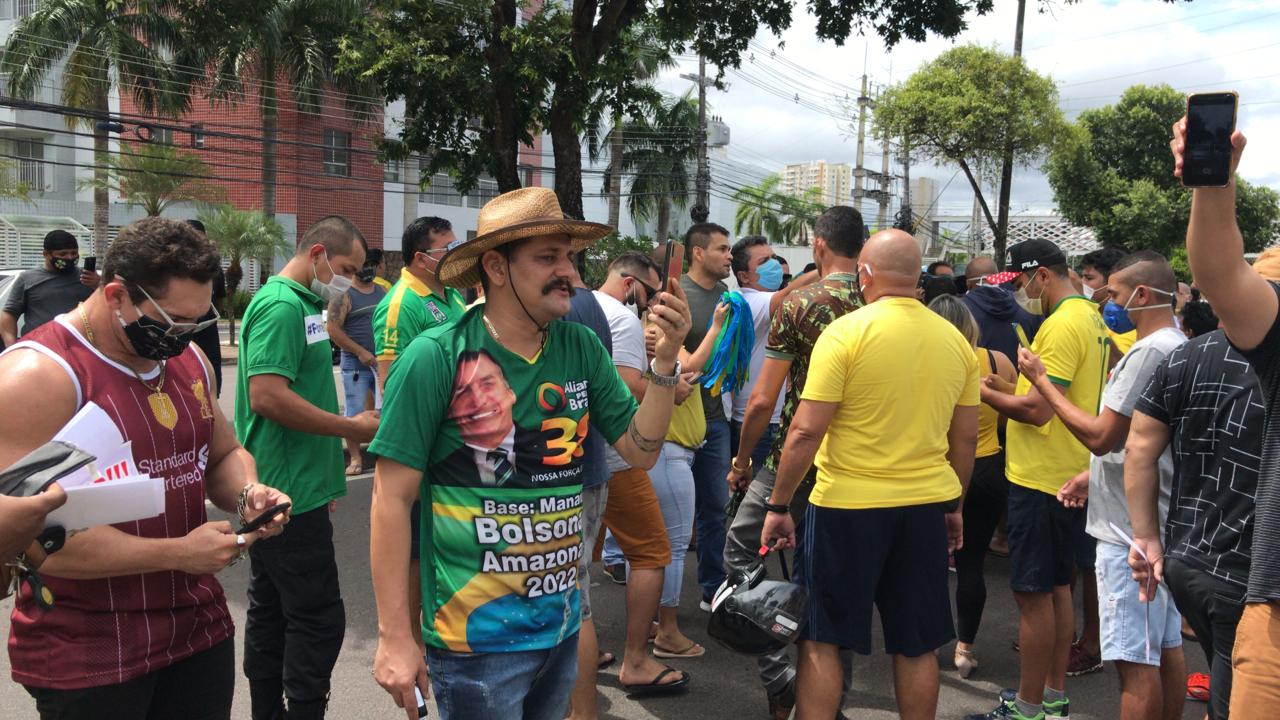 Em vídeos e fotos gravadas pelos próprios manifestantes, é possível ver o tenente-coronel aposentado da PM do Amazonas, Ubirajara Rosses, liderando a atitude que desrespeita a ordem do Governo do Amazonas e da Prefeitura de Manaus, de distanciamento social e do uso de máscaras.