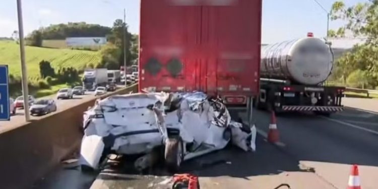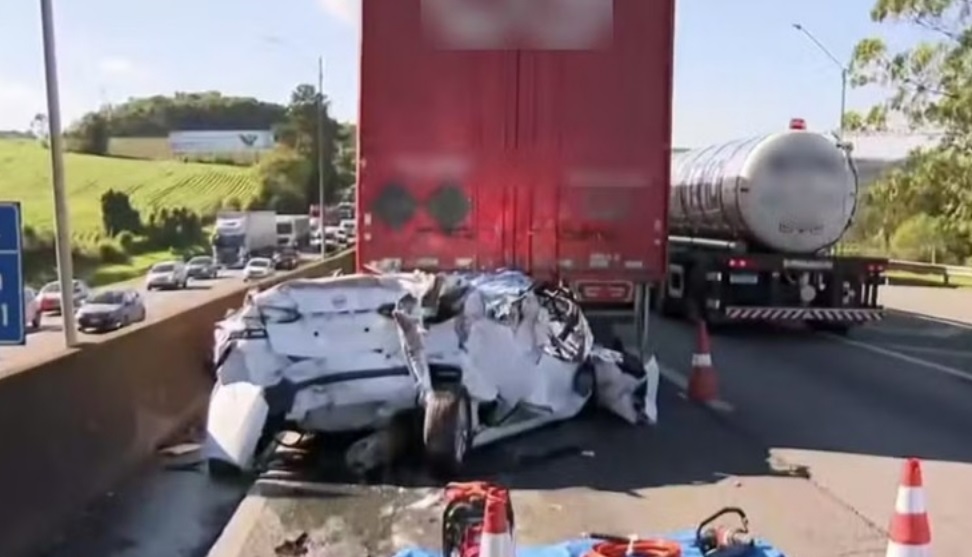 BRASIL – Um carro com três pessoas da mesma família foi esmagado por duas carretas nesta quarta-feira (19), na BR-376, em São José dos Pinhais, perto de Curitiba.