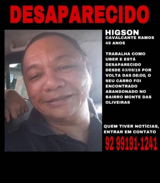 Manaus – O motorista Higson Cavalcante Ramos, de 49 anos, desapareceu por volta das 22 horas da última terça-feira (03), em Manaus, onde atualmente fazia transporte de passageiros por meio do aplicativo da Uber.