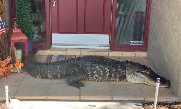 EUA| Uma cena surpreendente aconteceu na Florida, (EUA). Uma família precisou de ajuda para tirar um jacaré de quase três metros da porta de sua casa. O caso ocorreu no dia 30 de Junho e divulgado nas redes sociais pela reserva ambiental Croc Encounters.